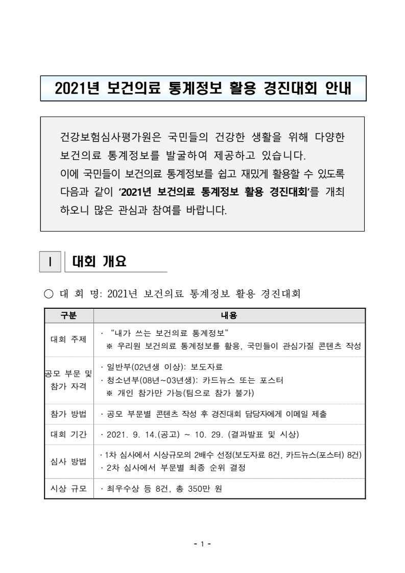 [공모전] 보건의료 통계정보 활용 경진대회 안내 (~10.12)